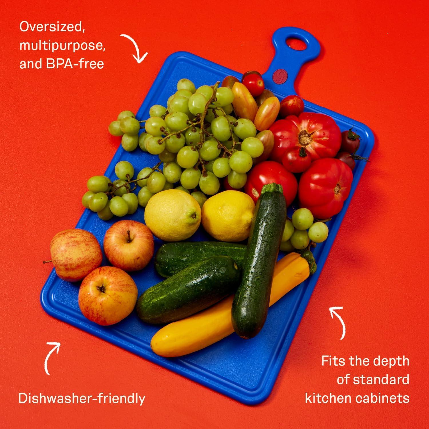 Great Jones All Aboard Oversized Kitchen Cutting Board – Reversible Prep & Serve Board with Juice Groove | Lightweight & BPA-Free | Knife-Friendly & Dishwasher Safe | Broccoli 12 x 16 Inches(Blueberry)