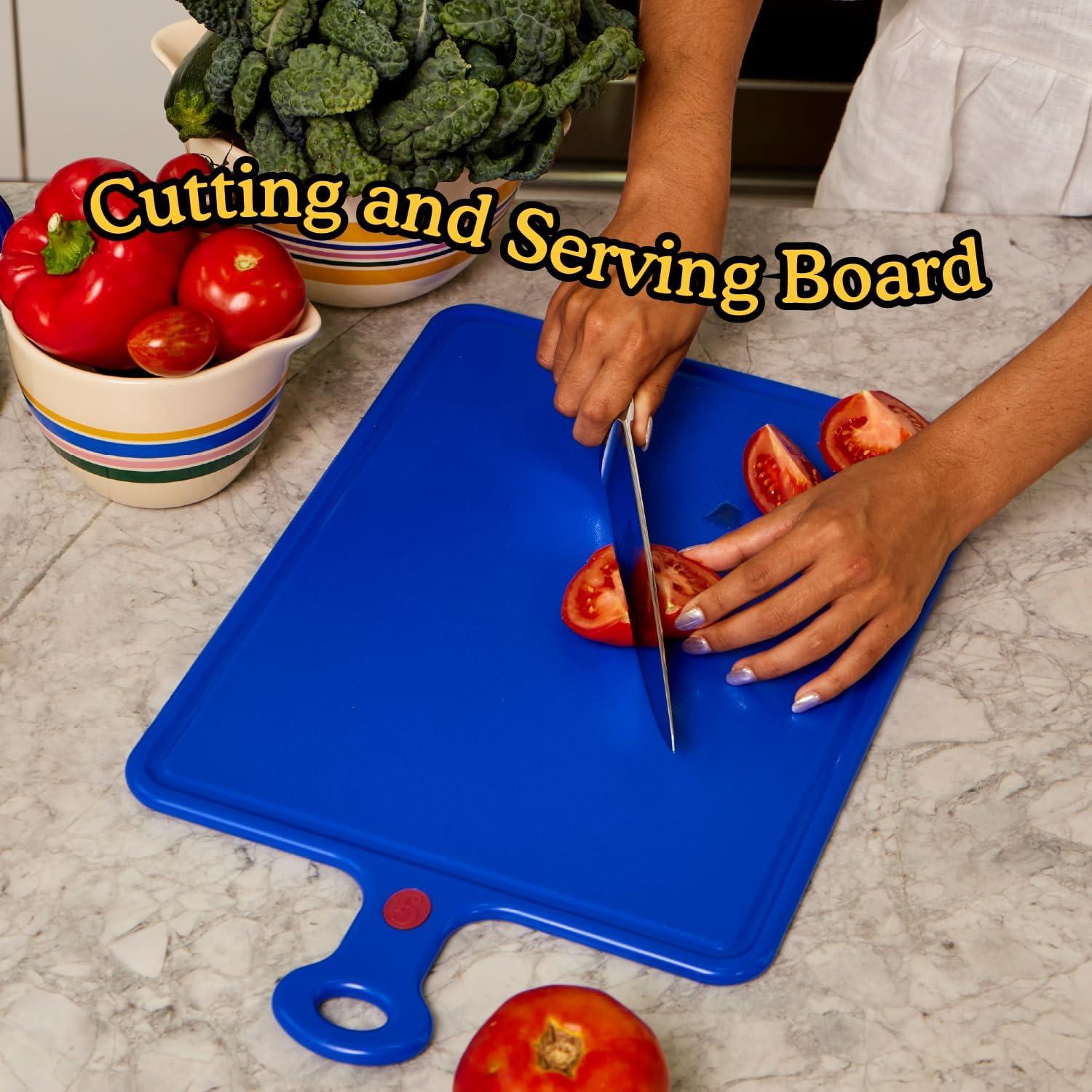 Stain and Odor Resistant: Made from durable, recyclable plastic, this board resists stains, odors, and won’t dull your knives. Say goodbye to lingering garlic smells and hello to fresh, clean prep every time!