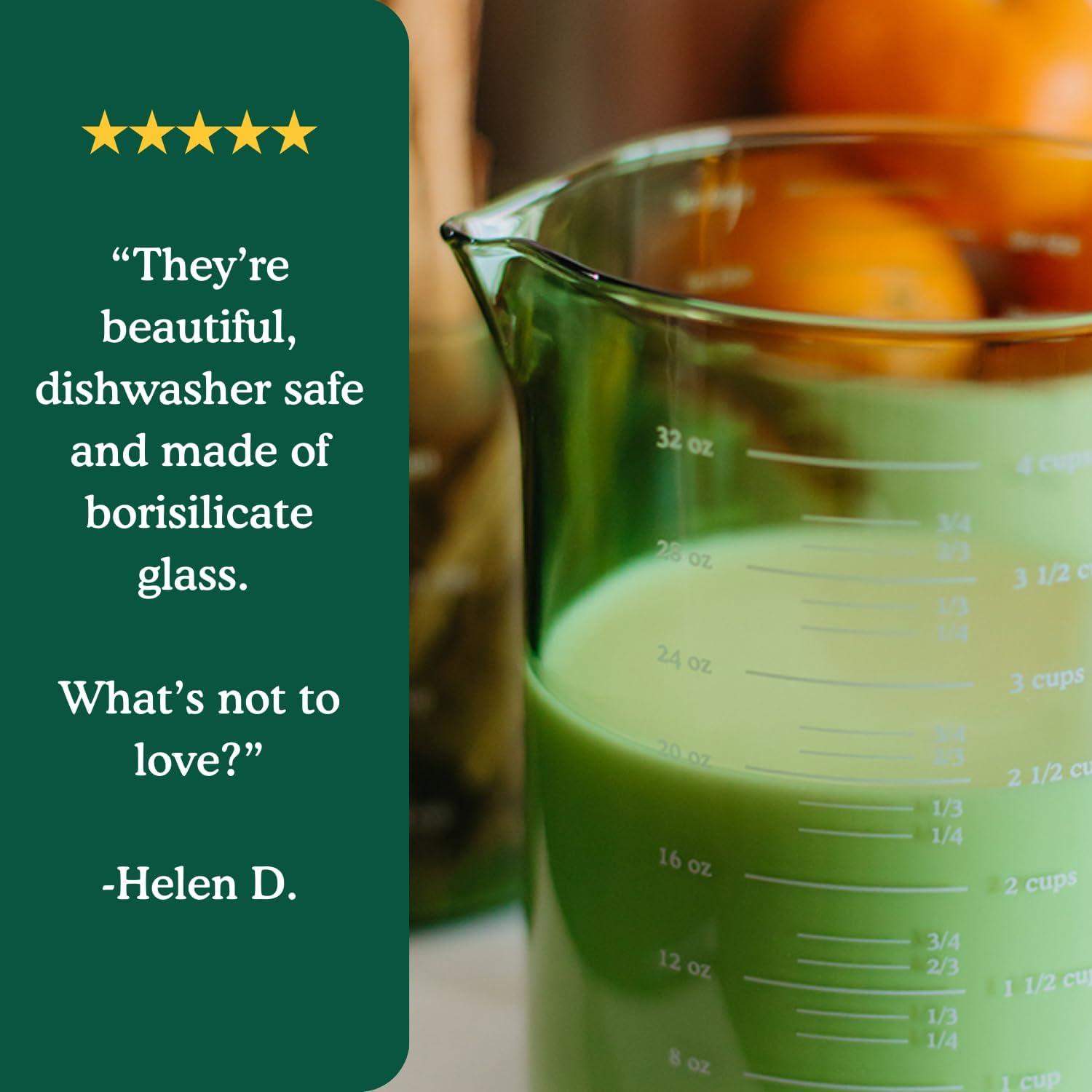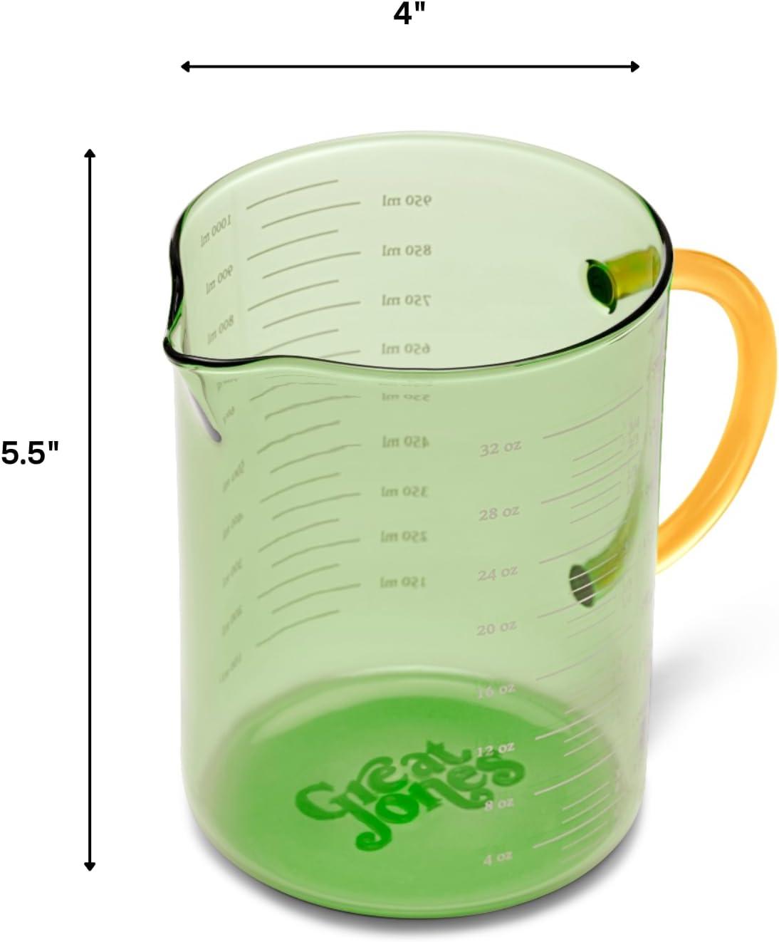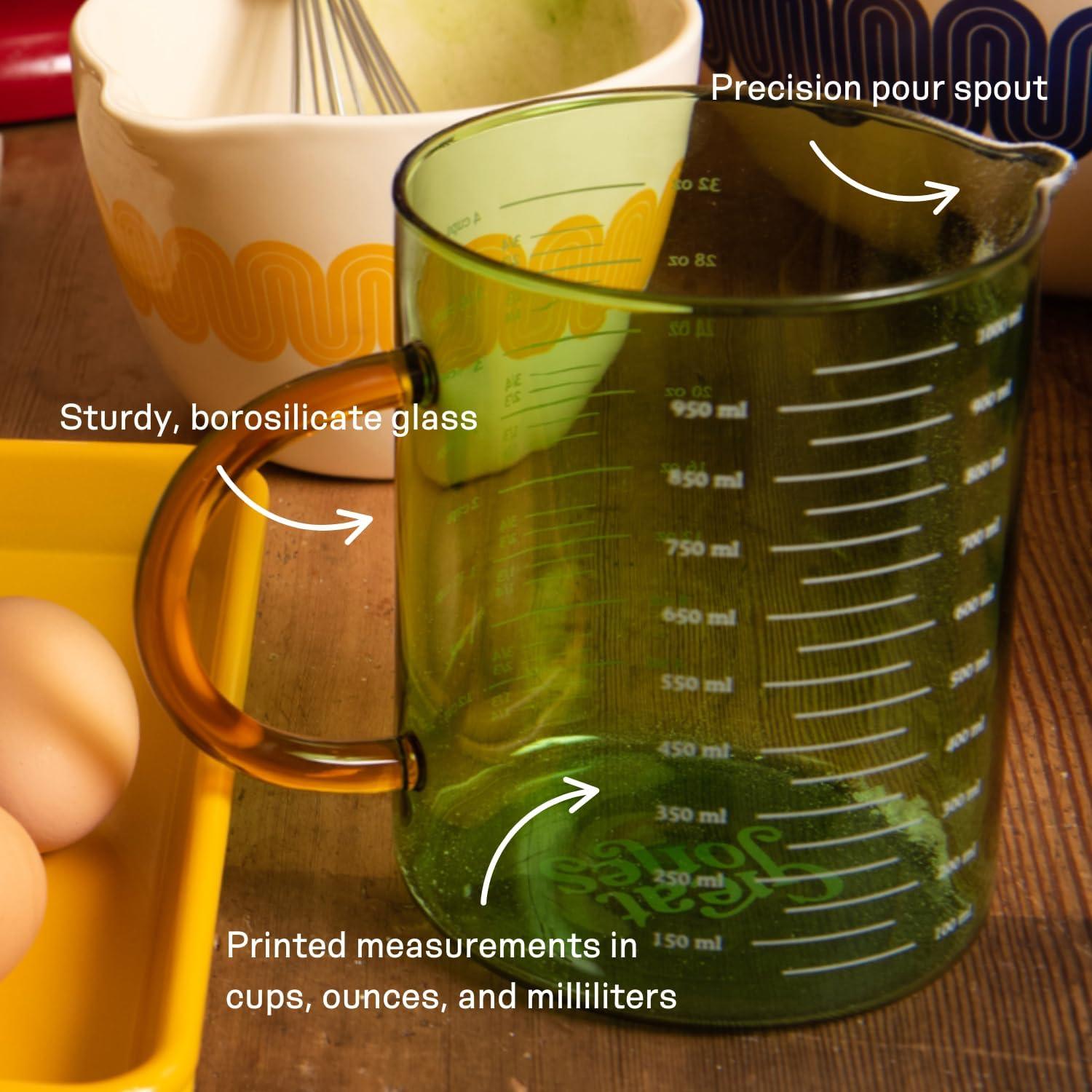 Great Jones Beyond Measure 4-Cup Glass Measuring Cup | Durable Borosilicate Glass with Easy-Read Markings, Precision Pour Spout | Microwave & Dishwasher Safe | Broccoli 5.5 x 4 Inches(Broccoli Large)
