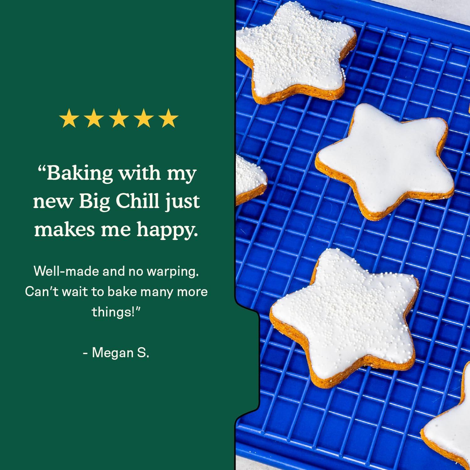 [ OVEN-SAFE WIRE RACK FOR COOKING ] Crafted from heavy-weight aluminized steel, Big Chill doubles as a bacon rack for oven or roasting hero—tolerating up to 450 °F without warping or bending. Slide it atop a pan to crisp wings, then toss it in the dishwasher for effortless clean up.