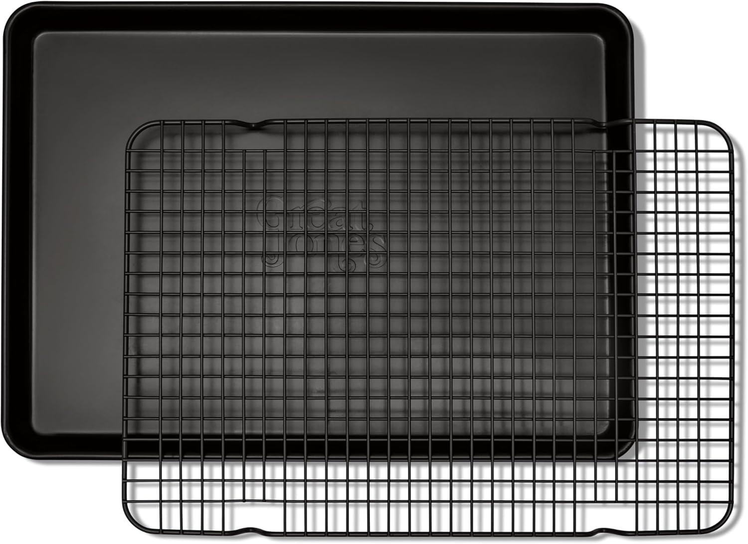 Great Jones Big Chill Wire Cooling Rack (Blueberry) – 16.9″ × 11.4″ Heavy-Weight Aluminized Steel,Nonstick Baking Rack – Oven Safe 450 °F, Bacon & Cookie Cooling Rack – Fits Half Sheet Pans(Pepper)
