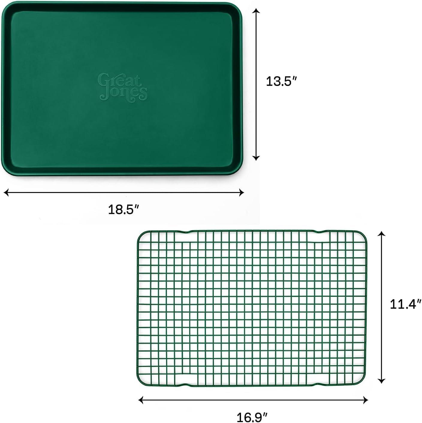 Great Jones Holy Sheet Pan & Big Chill Rack Set (Broccoli) | Nonstick, Aluminized Steel | 18.5″x13.5″ Heavy-Duty Sheet Pan & Cooling Rack | For Baking, Roasting, Broiling | Oven & Dishwasher Safe