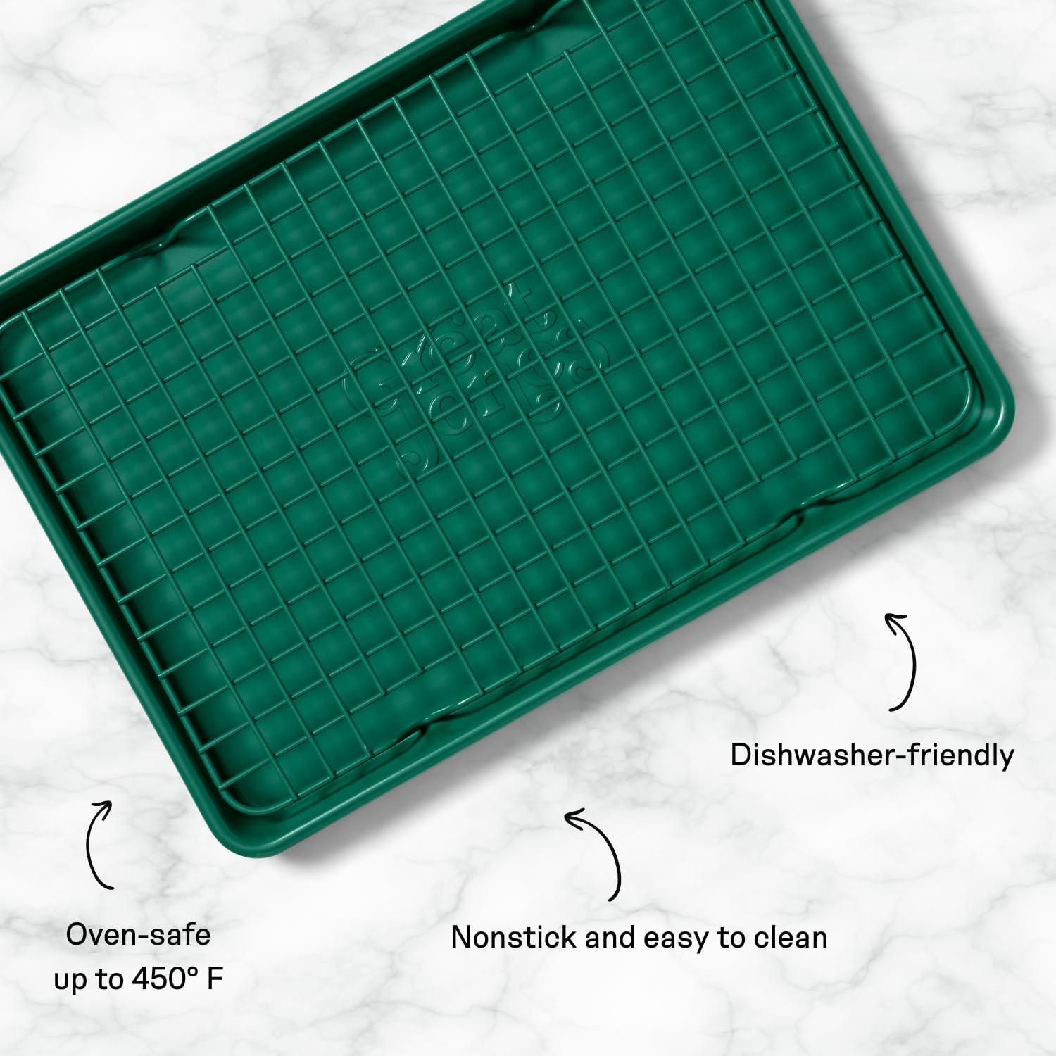 Great Jones Little Sheet Pan & Little Chill Rack Set (Broccoli) | 13.5 x 9.5 Heavy-Duty Nonstick Pan & Cooling Rack | Baking Tray & Wire Rack for Cooking, Baking, Roasting | Oven & Dishwasher Safe