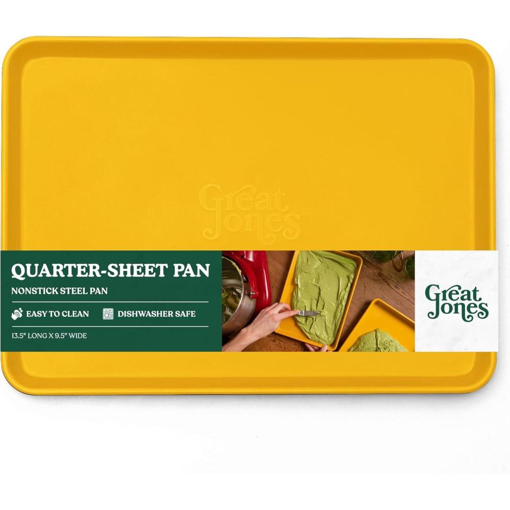 Great Jones Little Sheet (Pepper) | Jelly Roll Pan, Quarter Sheet Pan | Aluminized Steel,13.5″ x 9.5″ | For Baking, Roasting, & Broiling | Premium Bakeware with Even Heat Distribution(Mustard)