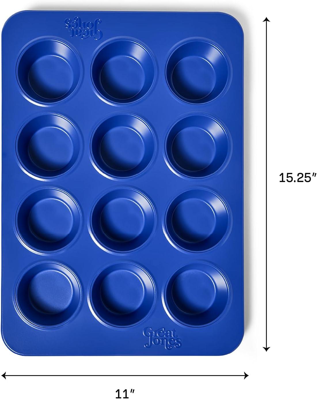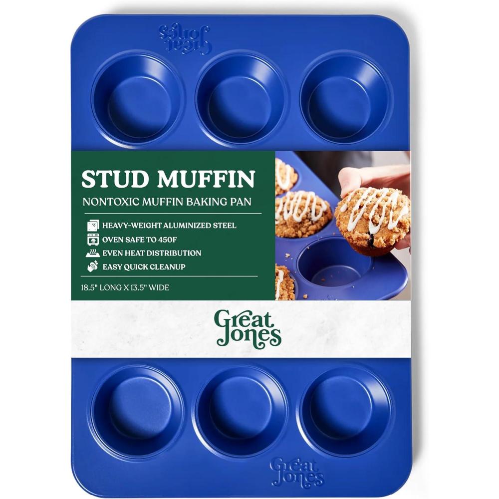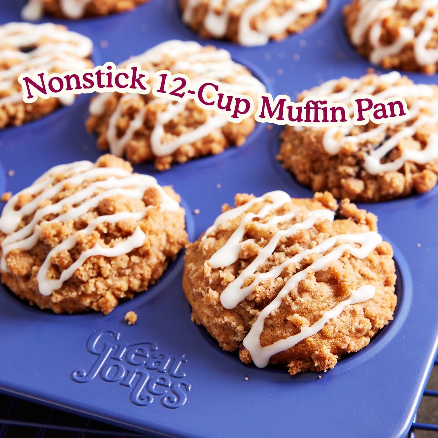 Great Jones Stud Muffin (Raspberry) | Nonstick 12-Cup Muffin Pan | Dual-Layer Nonstick Coating | Chemical-Free & Nontoxic | Oven-Safe to 450°F | Warp-Resistant & Easy Cleanup(Blueberry)